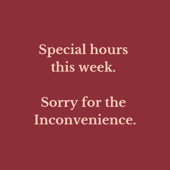 We are available by appointment only.Peter is in Germany this week for his father's funeral.